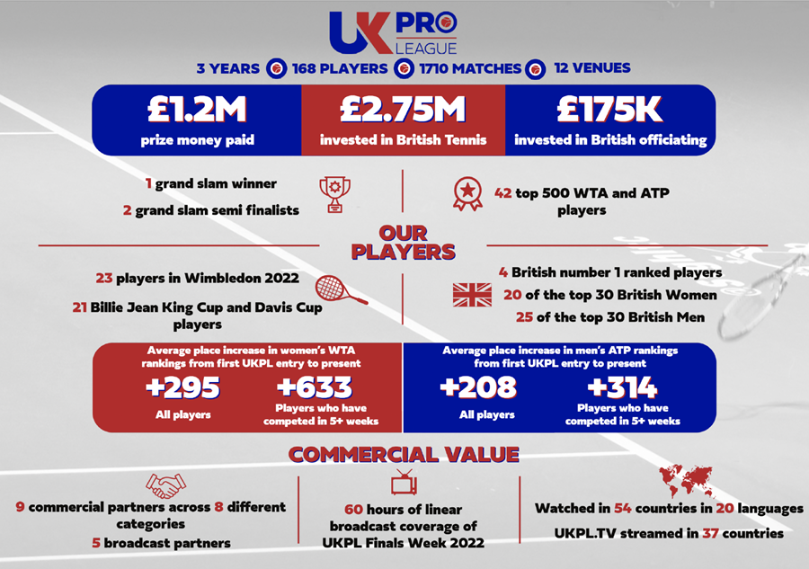 New TIA UK member the UK Pro League has posted some impressive statistics since it arrived on the British tournament scene. It is the only domestic league that brings together Britain’s top tennis professionals for a season long competition to crown a men and women’s champion.