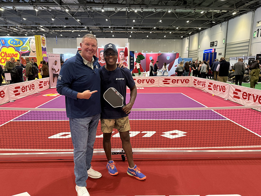 AT Sports’ RollX court made its debut in London this month to help grow the game of pickleball worldwide. AT Sport’s Tracy Lynch was on-site to celebrate alongside Emmanuel Otu, ambassador for Pickleball Lambeth, who has been instrumental in helping grow the game across London. The RollX court was featured at Brand Licensing Europe (BLE) in London, where Lotto Sport hosted a pickleball event that showcased its portable court system.